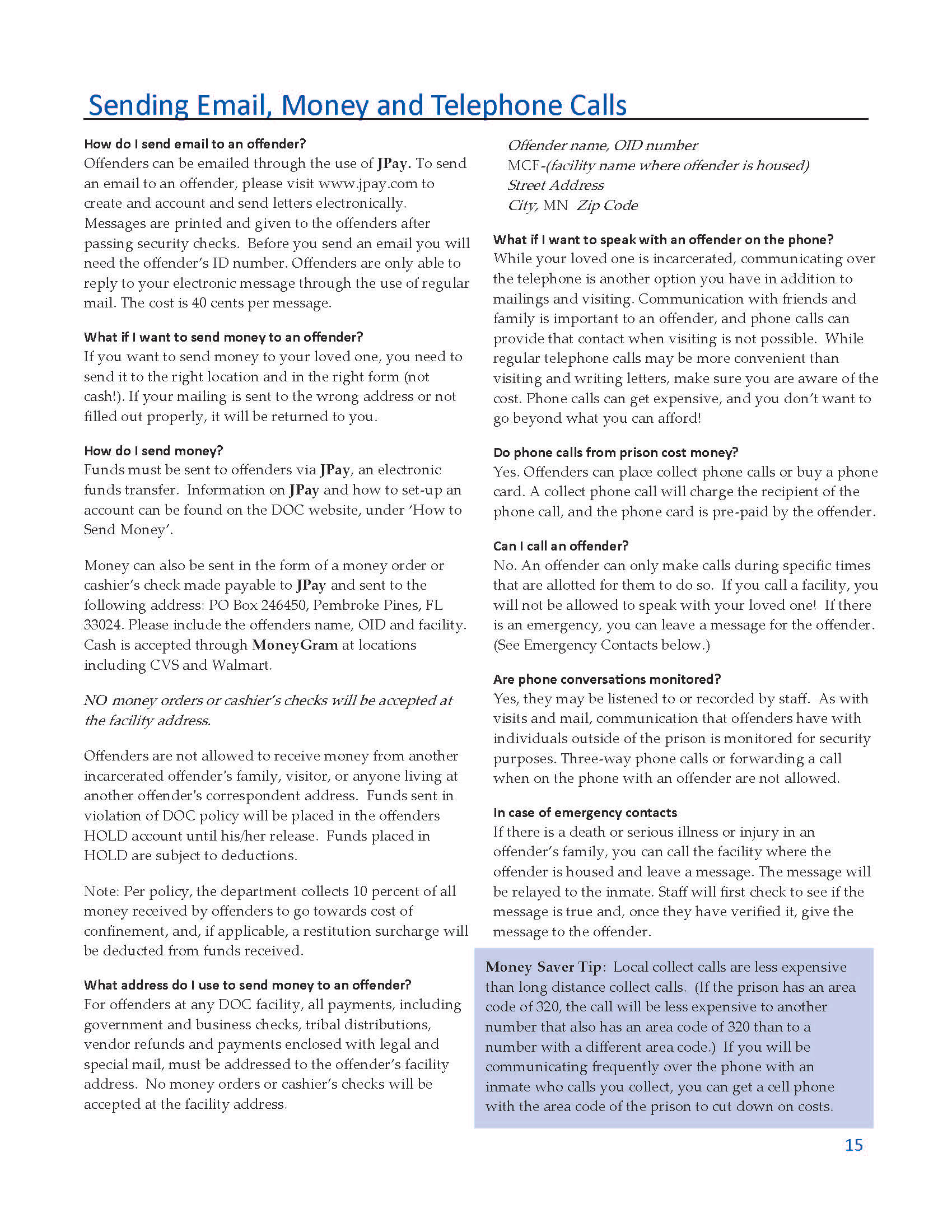 Who? Audience would be people who know someone who is incarcerated.